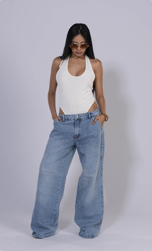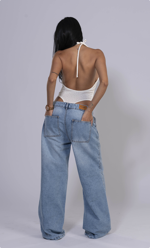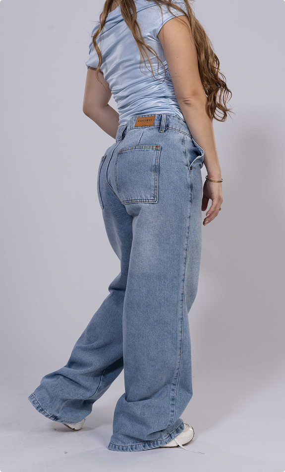 Jean baggy fit, 100% algodon, tiro medio, azul claro, bota recta, bolsillos delanteros diagonales – traseros cuadrados y todos funcionales.